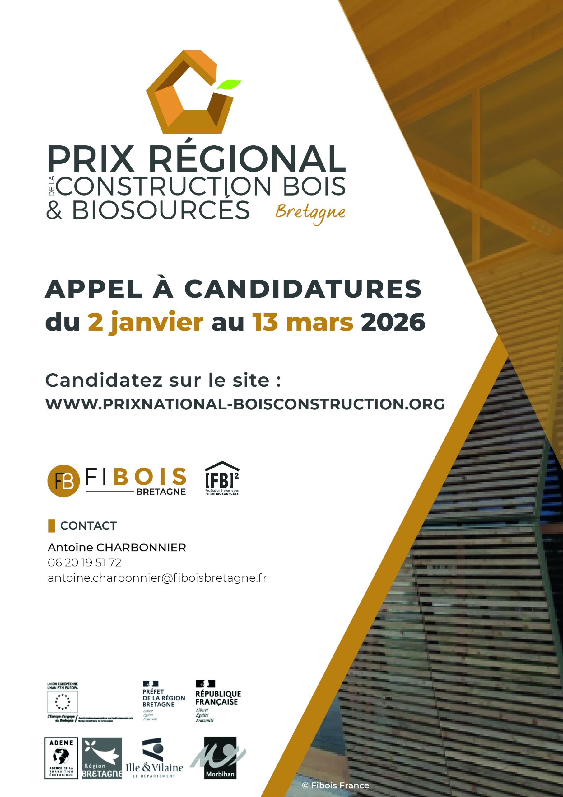 Le Prix Régional de la Construction Bois Bretagne est organisé par Fibois, l’interprofession de la filière forêt bois en Bretagne en partenariat avec la Fédération Régionale des Filière Biosourcées FB2.