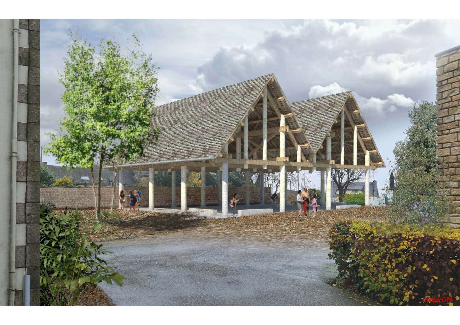 Dans le cadre du réaménagement urbain mené par Origami, la Mairie de Bignan (56) a souhaité créer une halle publique et a fait appel aux architectes framm architecture et Olivier POUVREAU architecte qui ont conçu une structure bois originale, rustique et élégante.